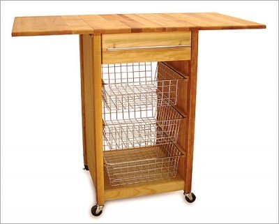 This Catskill kitchen cart with drop leaves offers a large workspace but doesnt take up a lot of room The unique drop-leaf design enables you to work with both drop leaves to create a workspace that measures 44W x 21D This kitchen cart has plenty of storage with three chrome baskets and a conveni